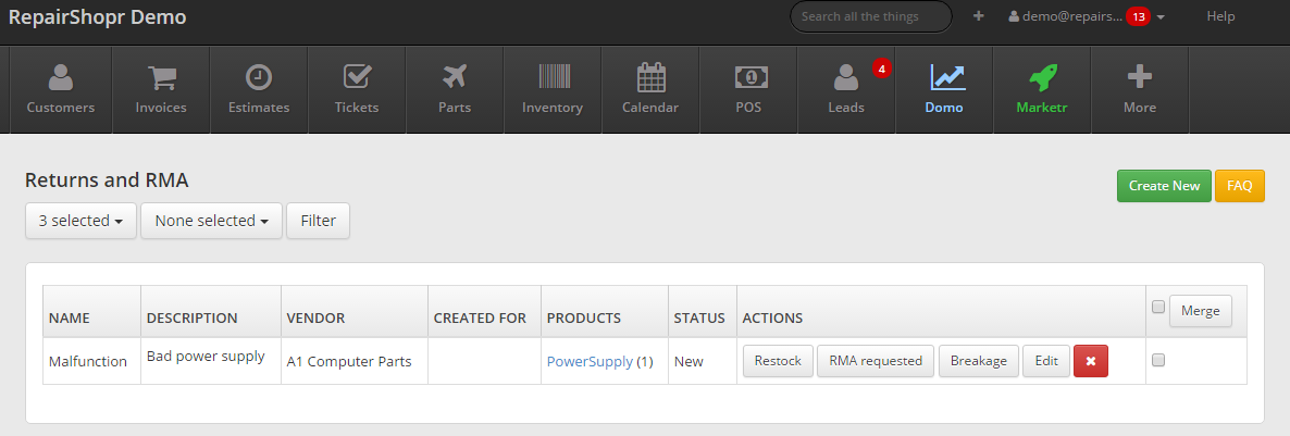 http://feedback.repairshopr.com/knowledgebase/articles/350213-rma-returns-tracking