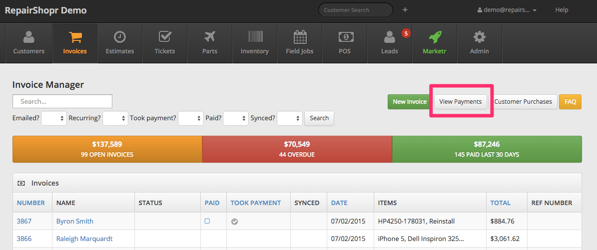 - Add ‘View Payments’ button on invoices/index page