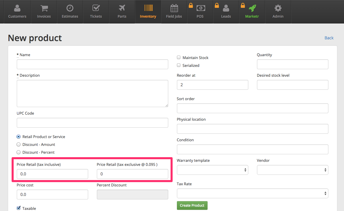 - Beta of calculator for tax inclusive / exclusive on inventory items