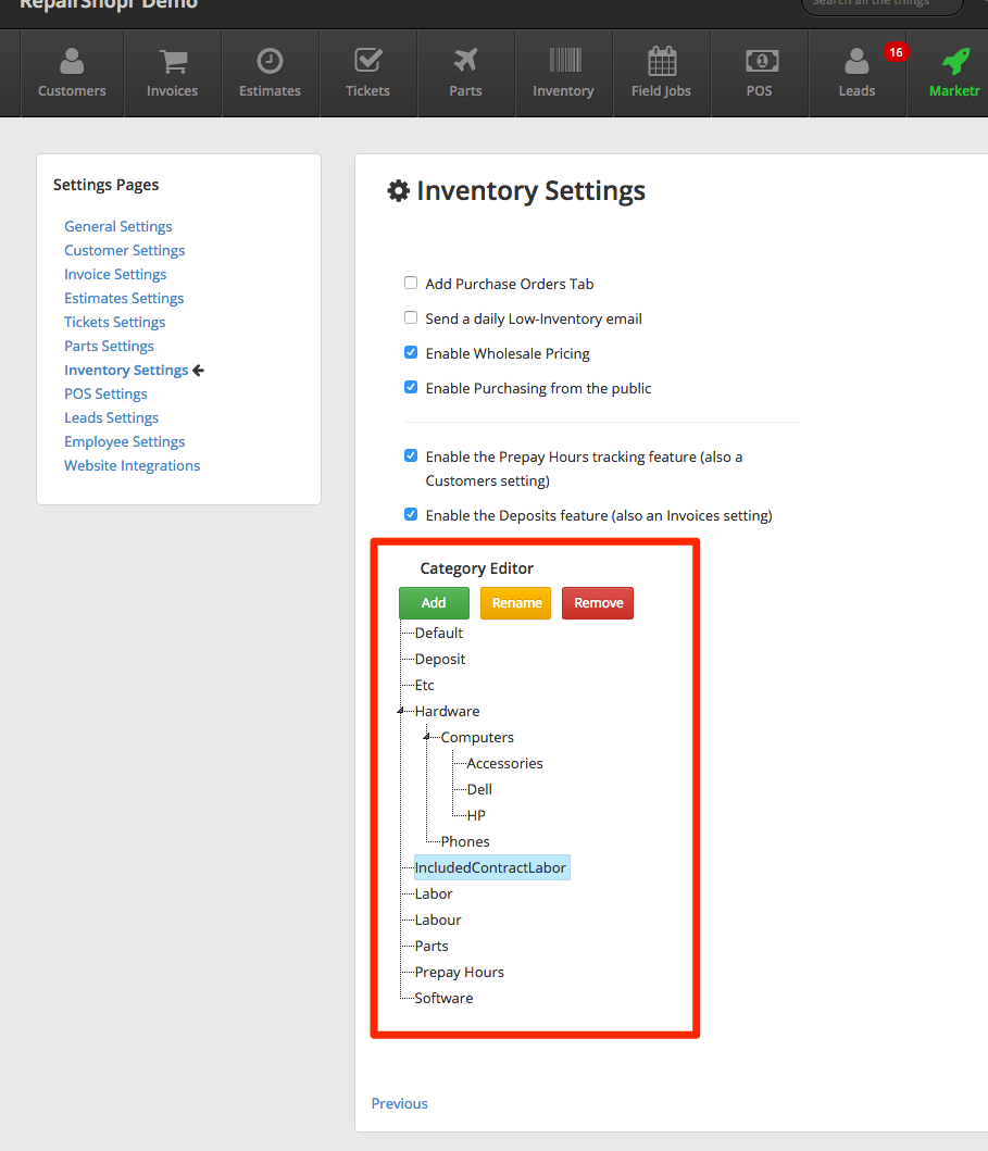 - We linked the settings for Deposits and Prepay Hours on the Inventory settings page (where Categories are managed).