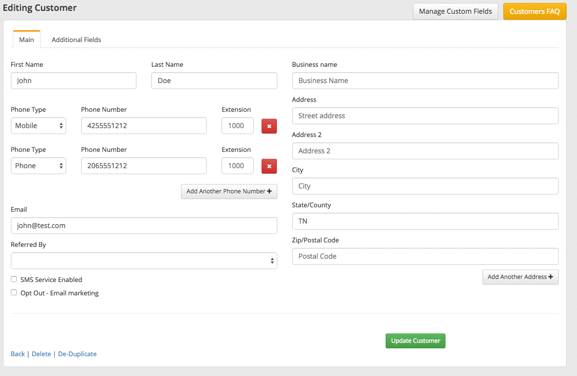 Now when creating a customer you can setup multiple addresses. You could add a “Bill To” and it will show up on the invoices, and add multiple other addresses that can be selected on Tickets/Appointments.