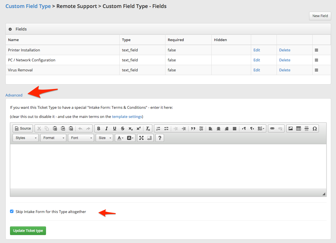 Now you can specify custom Terms and Conditions for the Intake Form based on Ticket Custom Field types, or have it skip altogether based on the ticket type.