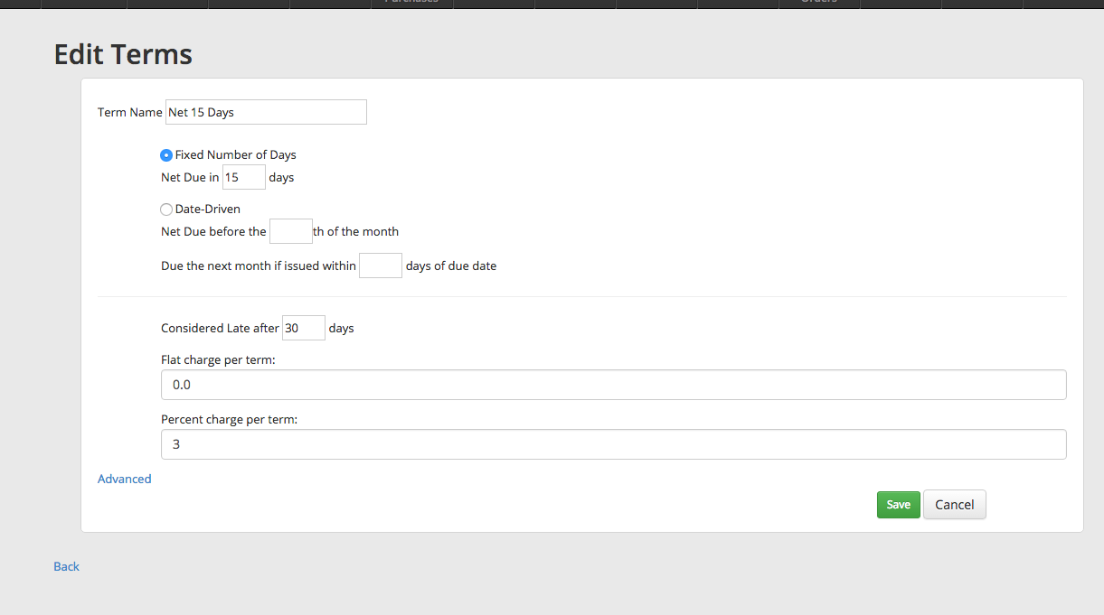 Now you can configure “invoice payment terms” to include late fees automatically. Just put a fixed amount or percentage on the terms, and we’ll do the rest!